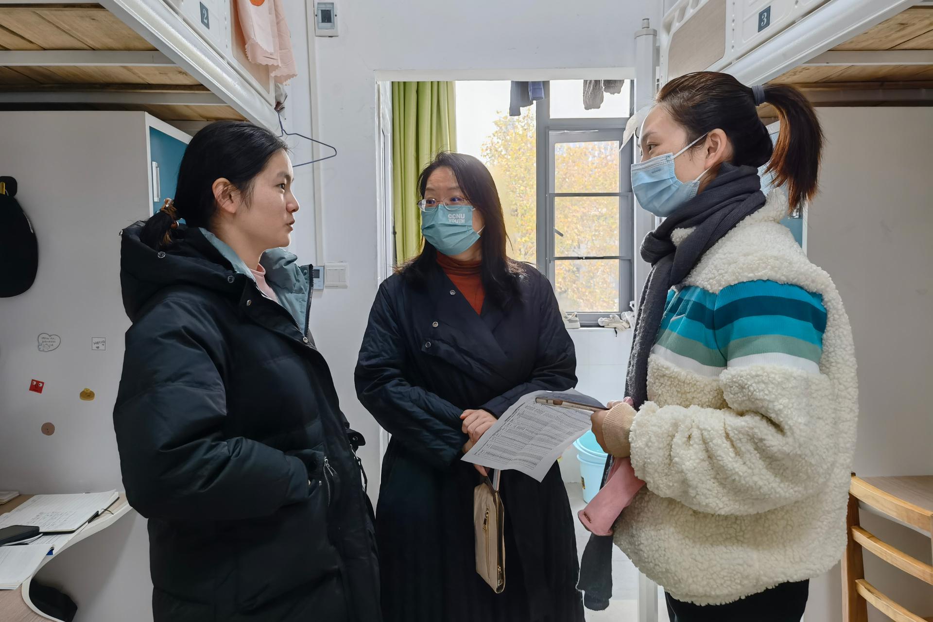 华新在线讯(通讯员 李鸿)为进一步落学校校疫情防控工作要求,常态化开展“我为师生办实事”活动,12月5日,院党委书记曹慧东同志、副书记程秀莉同志带领学工团队前往学生宿舍看望走访即将返家学生,并了解学生困难情况,帮助学生解决搬运行李等实际问题。