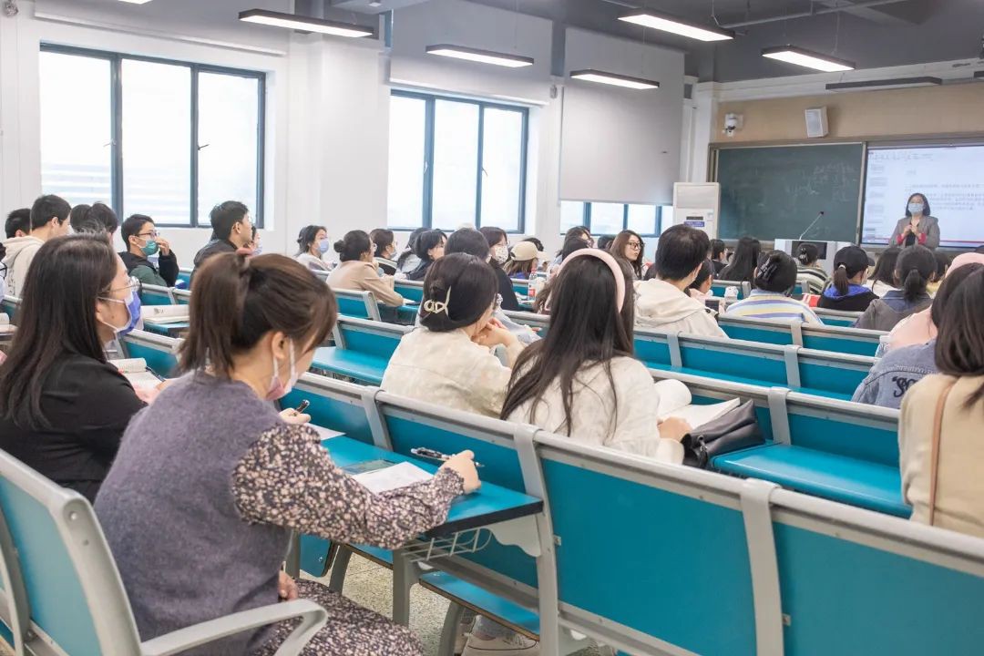 (程秀莉副书记走进教室与同学共同听讲以考察上课情况)