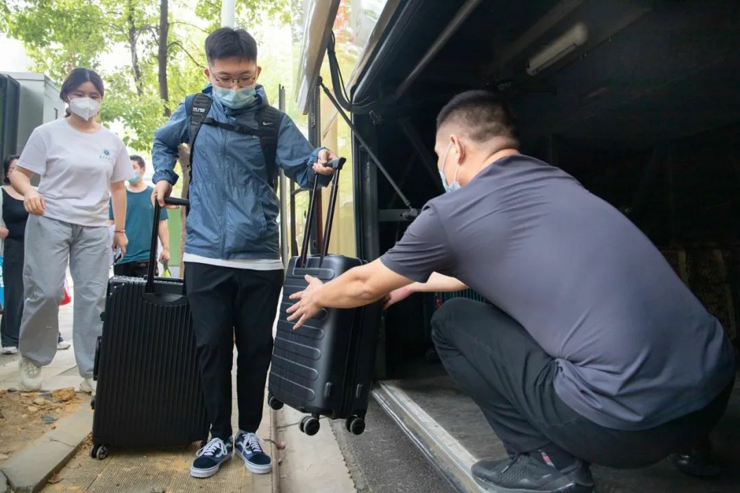 服务伊始,我院党委副书记程秀莉向志愿者们强调注意事项。首先要保护好自身安全,全程佩戴好口罩。其次,遵守学校疫情防控需求,学生家长不得通过返校大巴入校,志愿者们需做好解释工作。最后,核对好学生健康码与行程码,引领大家前往返校大巴,安全到校。