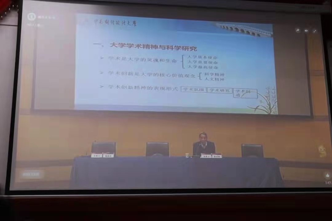 为学习贯彻落实两院院士大会中国科协第十次全国代表大会精神以及习近平总书记关于科学道德和科研诚信建设重要指示精神,根据全国科学道德和学风建设宣讲教育工作领导小组工作部署,湖北省科学道德和学风建设宣讲教育领导小组于2021年12月14日下午3:00,举办2021年湖北省科学道德和学风建设宣讲教育报告会。报告会会场设在湖北大学,邀请中南财经政法大学原校长吴汉东教授作报告,华中师范大学新闻传播院全体研究生于9号楼学院报告厅观看网络直播。