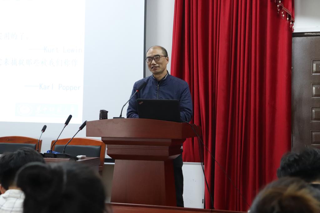 讲座开始,高海波教授首先否定了理论远离生活的认知误区,他直言“没有理论就缺少认识世界改造世界的手段,做研究需要先找到合适理论”。他进而强调理论学习中需把握4个关系即理论与概念的关系、理论与假设的关系、理论与现实的关系、理论与熟知及真知的关系并逐一举例讲解四类关系的具体含义。