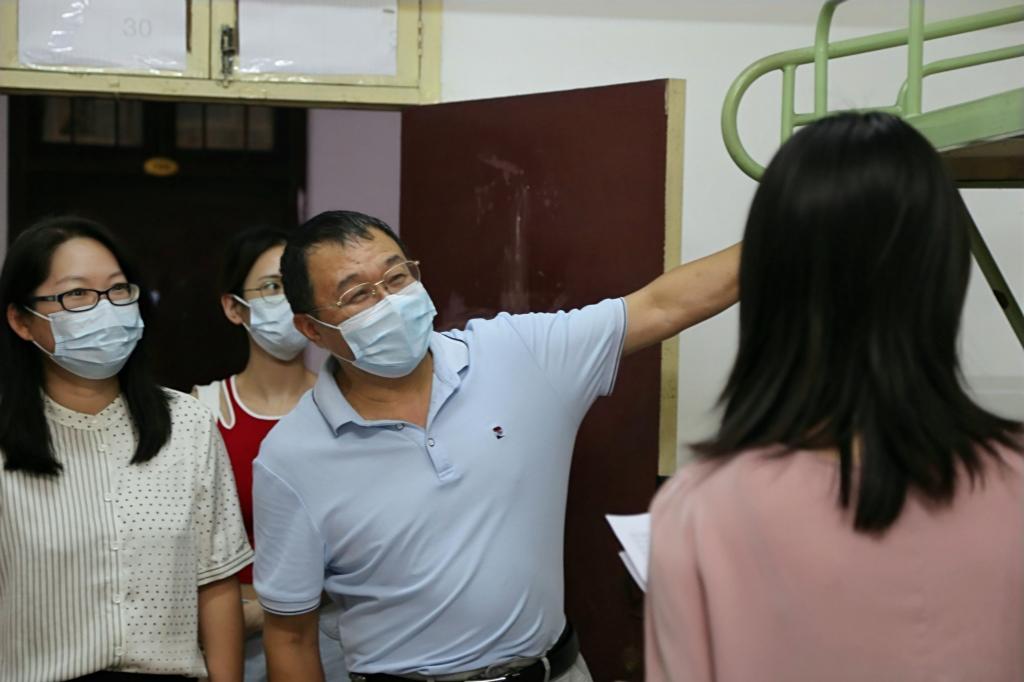 罗书记一行人先后前往西区七栋以及元宝山一栋看望新生。书记认真了解了同学们的基本情况,并重点对同学们在学校的适应情况进行了细致询问,最后表示有任何需要帮助的地方都可以随时联系学院老师。谈笑间消减了同学们的紧张情绪,减少了新生入学的陌生感。