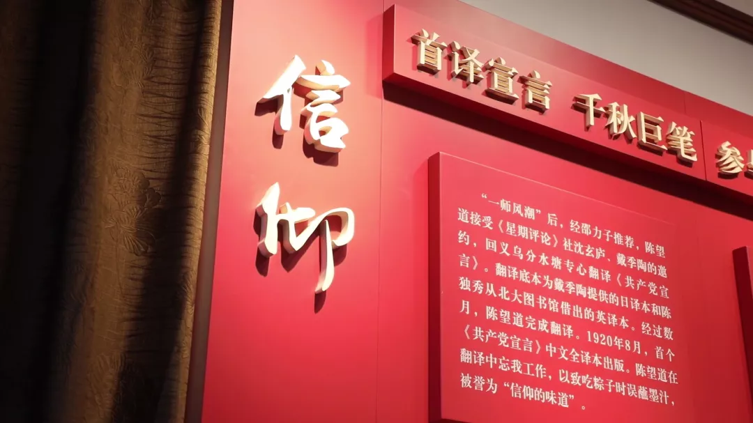 在上海杨浦陈望道旧居,师生们仔细聆听陈望道先生在浙江义乌老家的柴房里,一边字斟句酌地翻译《共产党宣言》,一边“蘸着墨汁吃粽子,还说味道很甜”的故事,并通过其人生历程感受穿越了一个世纪的信仰之光;
