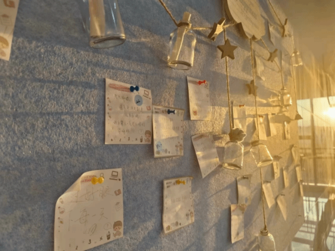 板块二:治愈之本——“心灵树洞“手账本。通过手账本的形式,提供贴纸画笔,让同学们以匿名的形式分享生活中的美与乐。