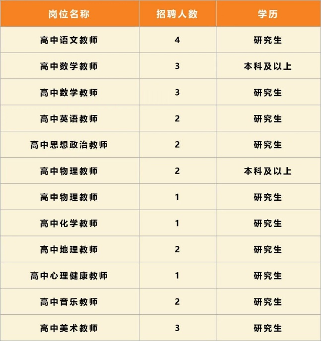 本次招聘编制教师共276名,其中:高中教师共109名,中小学教师167名,各设点招聘的具体岗位、条件和招聘人数见岗位需求表(附件1-6)。