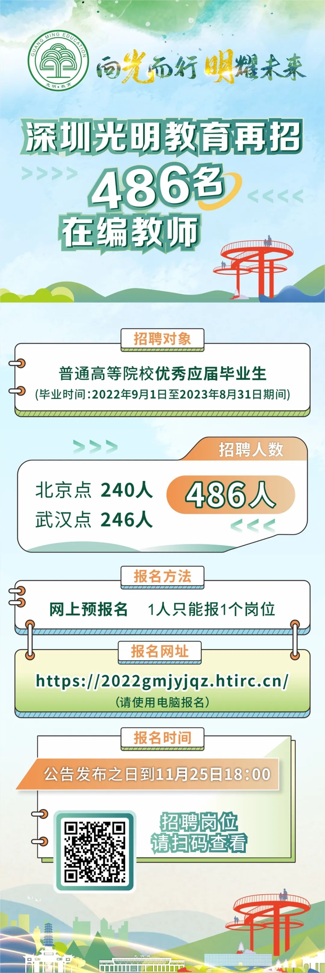 6、向光而行,明耀未来 | 再招486名在编教师!深圳市光明区教育系统2022赴外公招2023年应届毕业生工作12月再启动!