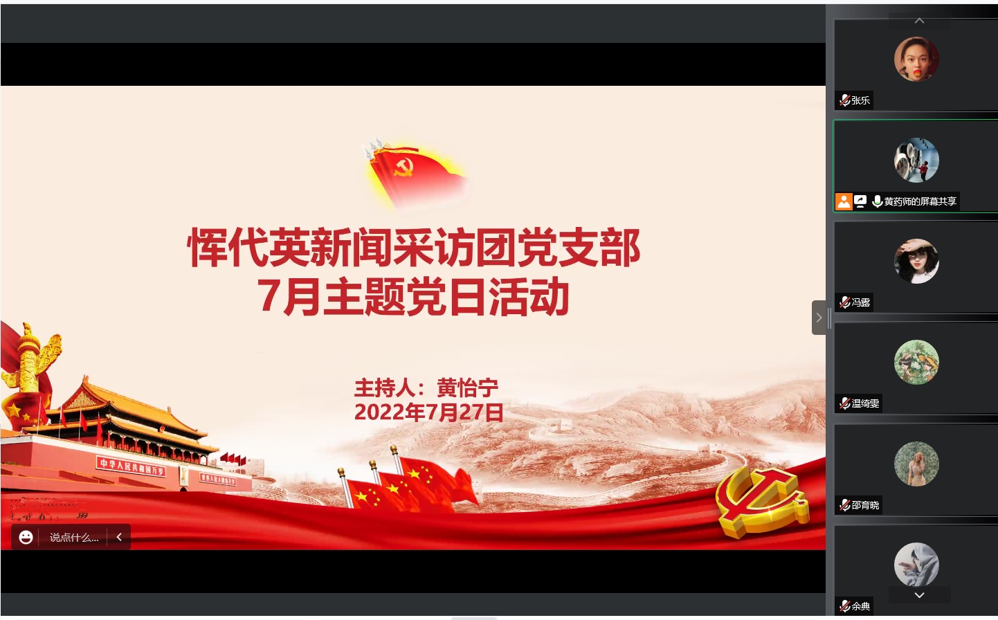 (恽代英新闻采访团党支部7月主题党日活动会议截屏)