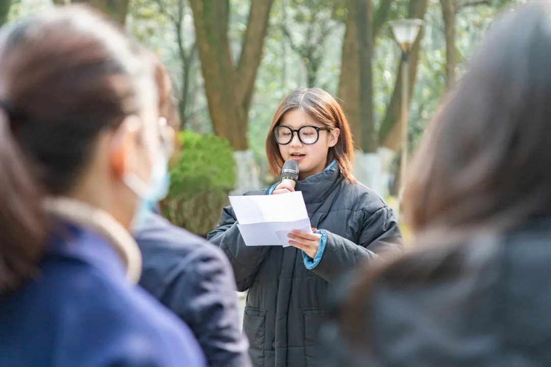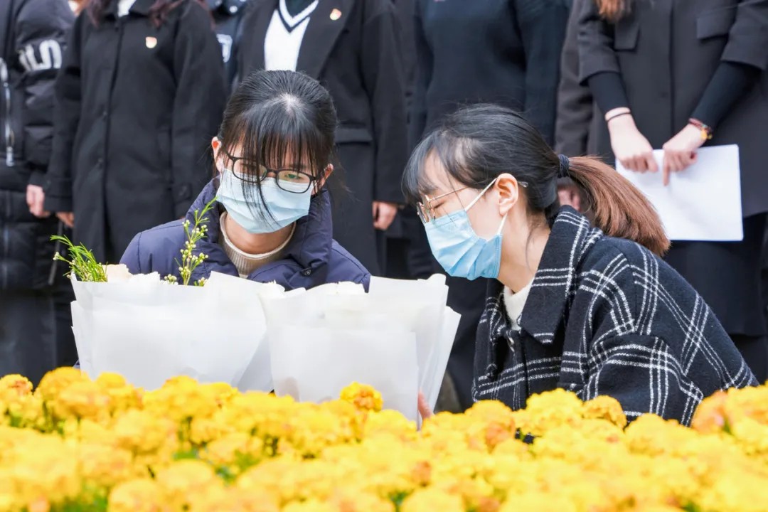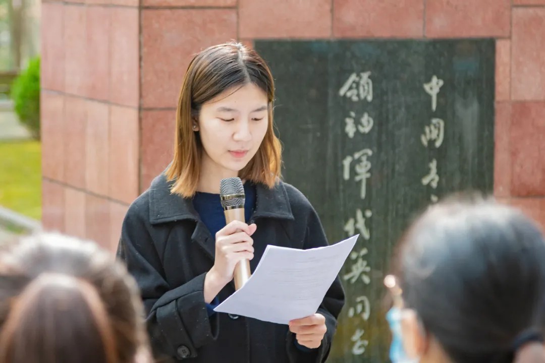 学生代表李怡、芦语嫣朗诵《和平宣言》,全体师生共同朗诵恽代英诗作《狱中诗》,恽代英新闻采访团党支部代表郑雯斐、利群党支部党员代表刘琴向恽代英雕像敬献鲜花。