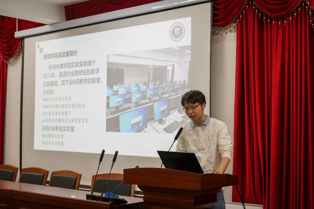 在学院实验室与实验课程介绍板块中,张璋老师对学院的各实验室、实验设备以及实验课程体系进行了全面的介绍。其中包括对“声音创作实验室”、“非线编与数据挖掘实验室”等同学们将来使用频率较高的实验室与相关课程体系的介绍。通过张老师的介绍,同学们对新闻传播学院的实验室与器材的概况有了充分的了解。
