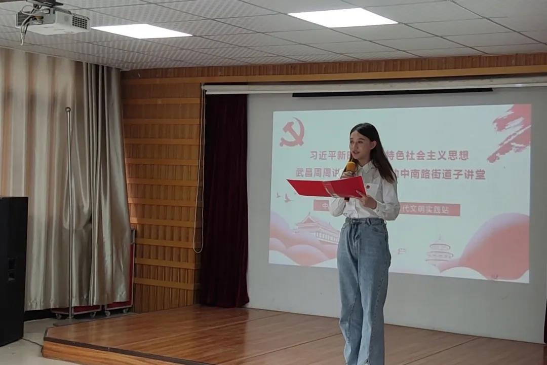 5月14日下午,华中师范大学新闻传播学院副教授李理带领“大学生红心宣讲团”走进武昌静安社区,开展《红色经典阅读与传播》社会实践课程。课程旨在通过讲述中国共产党诞生的历史故事,引导广大党员干部和群众共同学党史、知党情、感党恩、跟党走。本次课程联合武昌区中南路街道静安社区、湖北省社会科学界联合会、湖北省演讲协会、梅苑学校小学部和长春社区共同开展,参加课程的党员和师生代表共60余人。