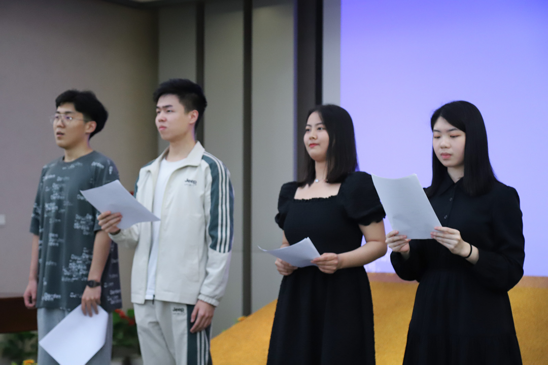 本次比赛共有九组参赛选手,选手们按照赛前抽签所得顺序依次上台进行展示。伴随着“诵读美文,我们寻找万里山河的广阔,我们感受中华文字力量”的开场词,比赛拉开帷幕。慷慨激昂的音乐声和声情并茂的诵读声交织成趣,为大家带来一场听觉盛宴。