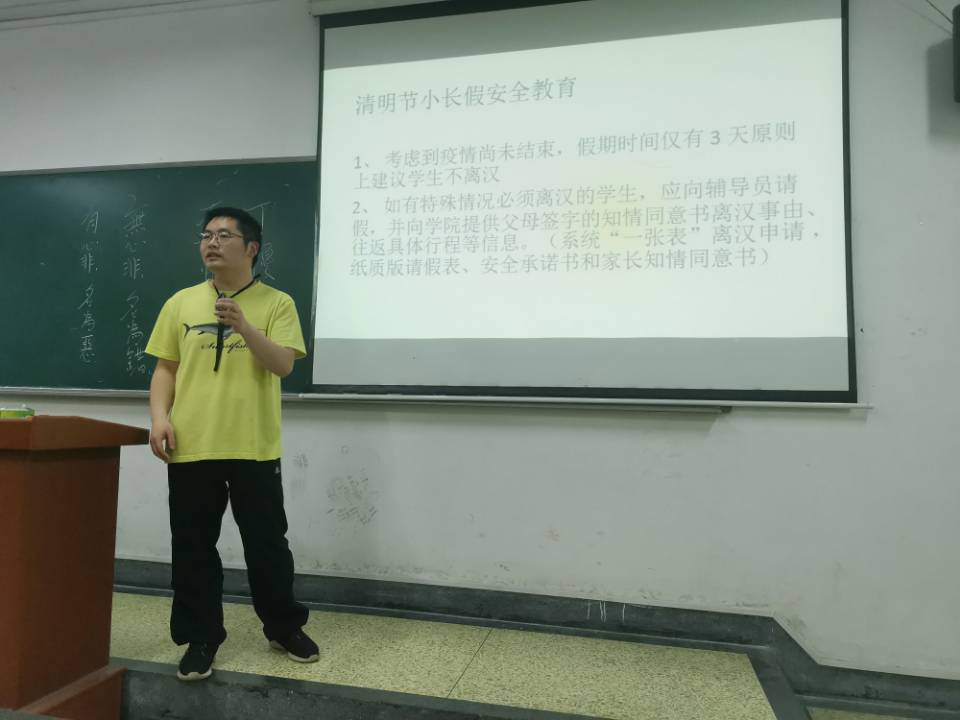 晚点名伊始,黄怡宁进行清明节小长假安全教育。他介绍了我校清明节请假离汉政策,提出了“无特殊情况,请尽量不离汉”的建议。