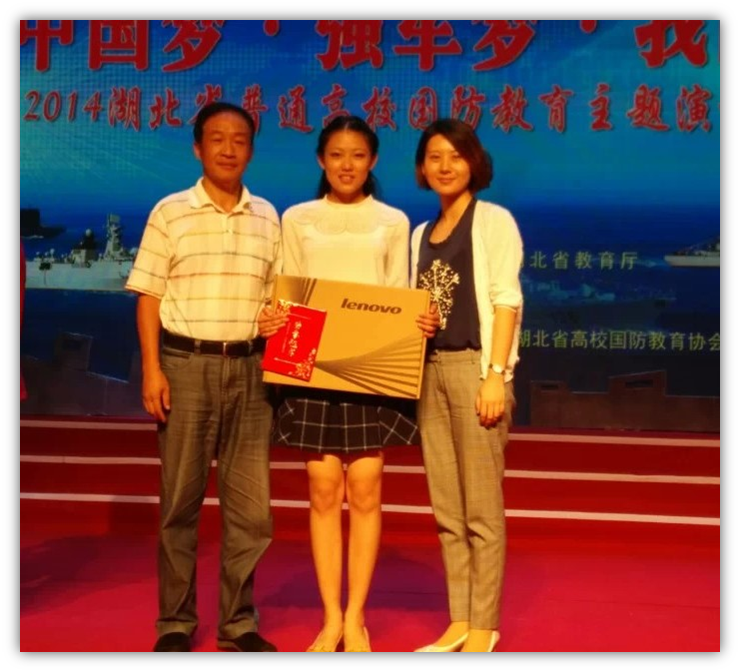 备赛期间,军训办的吕建平老师和招生办公室的李萌欣老师始终指导并陪伴着王鲁婧进行一遍遍练习,这增加了她的自信和底气。功夫不负有心人,王鲁婧最终以一等奖的成绩叩开了演讲主持道路的大门。
