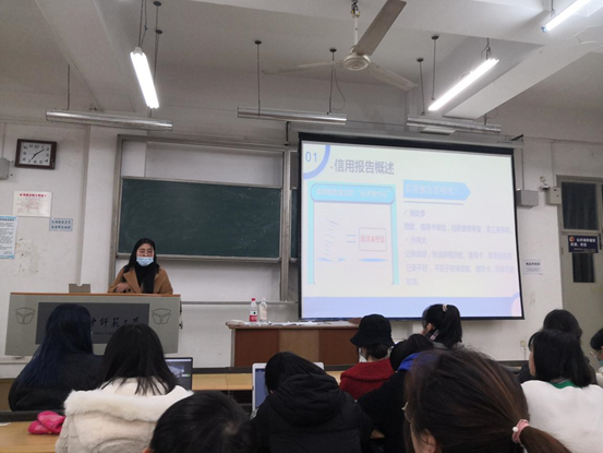 首先,辅导员李红玉向同学们介绍了个人征信查询渠道:有现场查询、网上查询和其他渠道。同时,李红玉向同学们介绍了个人信用报告和征信系统。个人信用报告即信用历史的客观记录,可以用于贷款、信用卡审批。个人征信系统是中国人民银行组织各商业银行建立的个人信用信息共享平台。李红玉还提醒同学们,要注意保护个人信息,不要将信用报告随意提供给他人或机构;不要过于频繁地通过手机银行查询个人信用报告,因为短期内查询次数过多,很有可能会被金融机构认定为潜在的高信用风险用户。