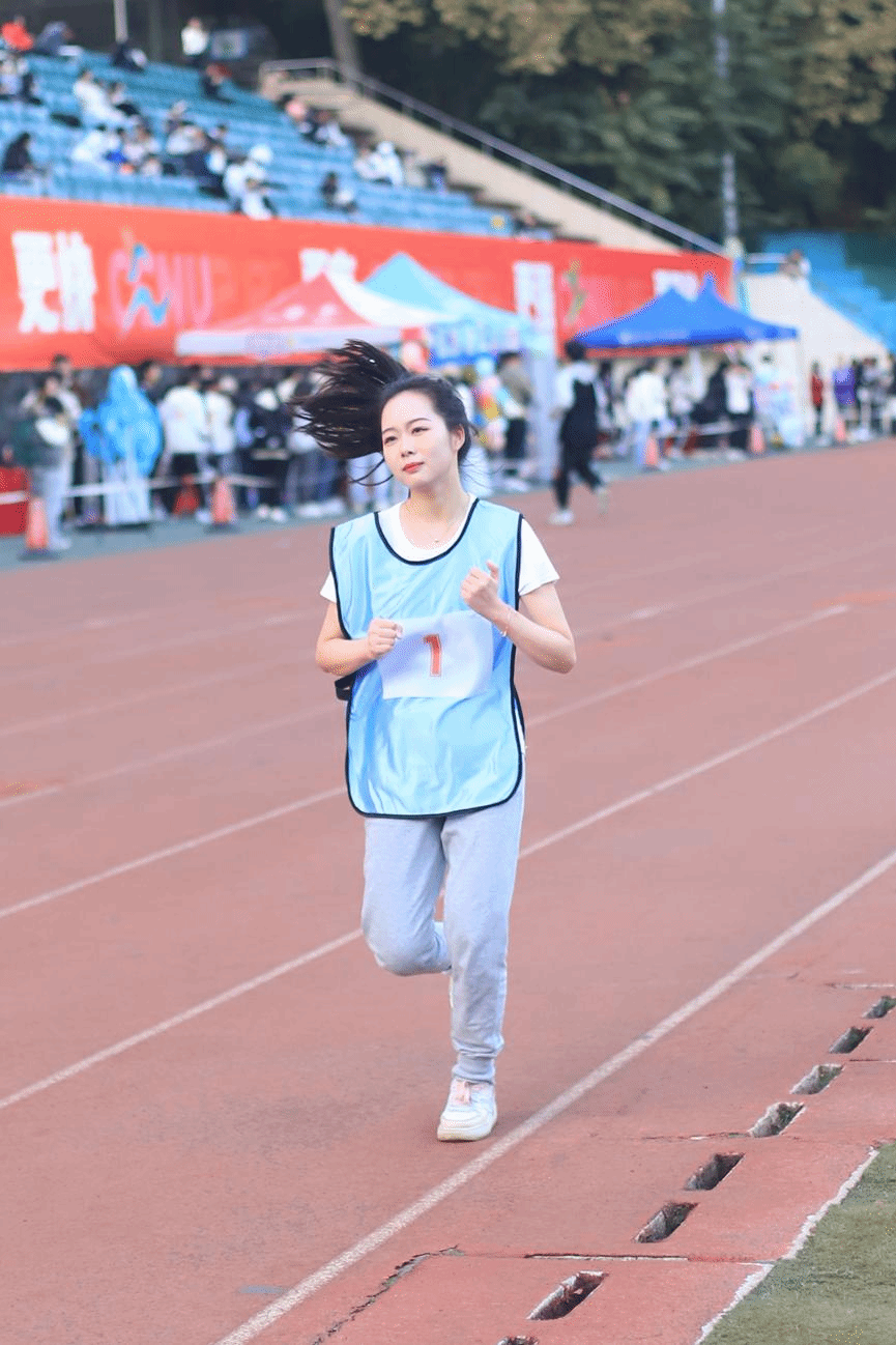 400米是对运动员速度和耐力的双重考验,尤其注重对跑步节奏和步伐频率的把握,在跑步过程中同学们需要及时调整呼吸,以稳定的节奏去跑。比赛枪响,一声令下,四位同学在各自的赛道上全力奔跑。阳光照耀下她们的汗水晶莹剔透,衣服拉链散着也无暇顾及,心中只有一个目标就是奔向终点,于是每一次迈步都格外坚定,每一次摆臂都拼尽全力。