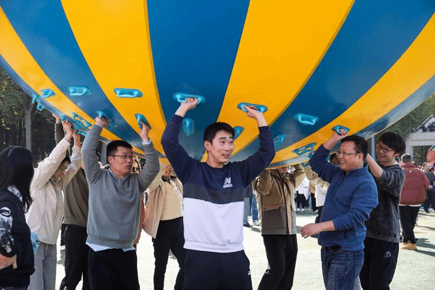 运转乾坤项目是今年运动会的新创项目,老师们都没有经验。面对“新玩意”,团体合作是他们对此次比赛最深刻的感受。陈科谈到:“这个项目注重力量和速度的协调,因此需要一定组织性。集体项目考验的就是大家的团队配合,靠集体的智慧和协作才能完成。”此外,程秀莉说到老师们基本每年都会参加教工组比赛,感受集体氛围。此次项目大家虽然都没有练习,但凭借团队的配合协作,教师代表团还是顺利完成了比赛,并且获得了13秒12的好成绩。