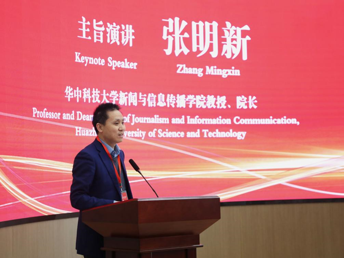 华中科技大学新闻与信息传播学院院长、教授张明新发表主旨演讲