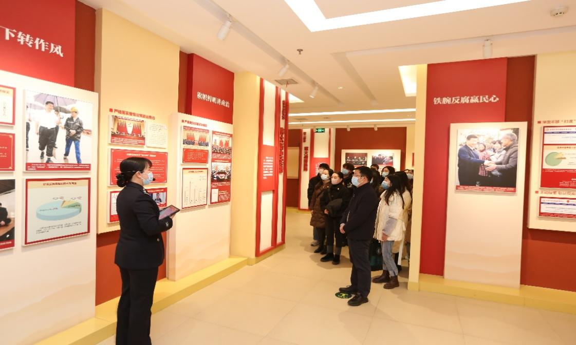 随后,在廉政教育基地讲解员的引导下,大家依次参观了“赶考之路”“廉政之规”“覆车之鉴”“湖北之为”等专题展厅。通过聆听详实生动的讲解,观看视频短片、照片实物、互动投影等展陈资料,大家系统地了解了湖北省近年来党风廉政建设工作取得的重大成效,学习了党章党规党纪和国家监察法,领悟了党中央坚持铁腕反腐的勇气和决心。