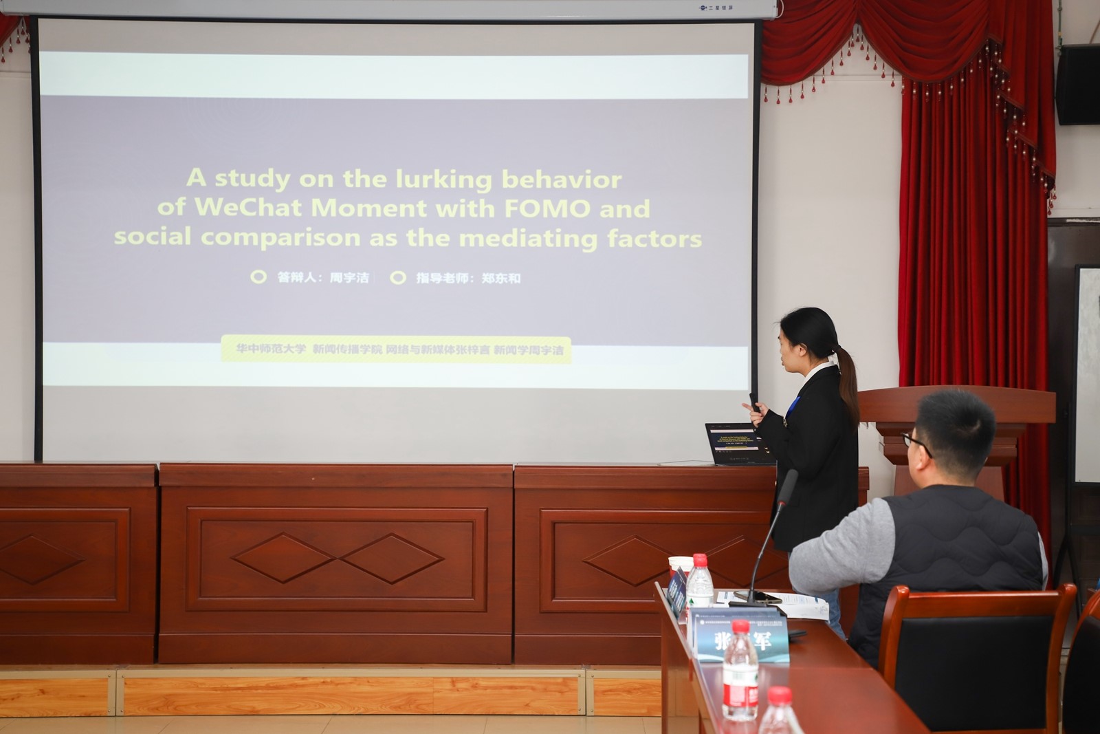 冉华特聘副教授在线上参加评议,他肯定了本科生新颖的选题,认为其符合并激发了青年群体的研究兴趣,并在专业话语的使用、概念的界定、传播动因的确定等方面提出相关建议。