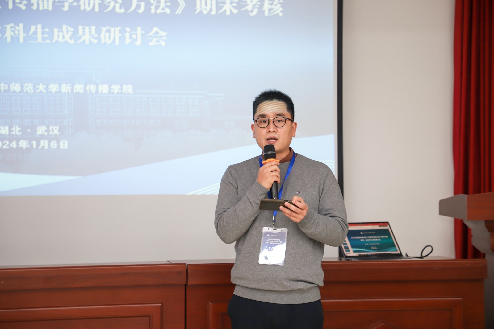 华新在线讯(通讯员 郑东和 苏子怡 王佳琪)2024年1月6日,华中师范大学新闻传播学院《传播学研究方法》期末考核暨第一届本科生成果研讨会,在华中师范大学九号楼8楼学术报告厅如期举行。本次研讨会共设两个分论坛,分别为“网络文化与国际传播”和“人工智能与媒介社会”。华中师范大学新闻传播学院副院长陈科副教授、张勇军教授、郑东和特任副教授、余欢讲师及参与课程的本科生受邀出席。