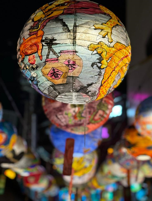 率先作分享的是来自中国台湾的蔡秉谚同学。寒假期间,他回到老家台南市度过了一个传统文化氛围浓厚的年。大街上是熙熙攘攘的人群,灯会集市从早到晚都热闹非凡。为迎接2024甲辰龙年,男女老少齐上阵,参与绘制孔明灯、品尝糖画、制作花灯等活动。