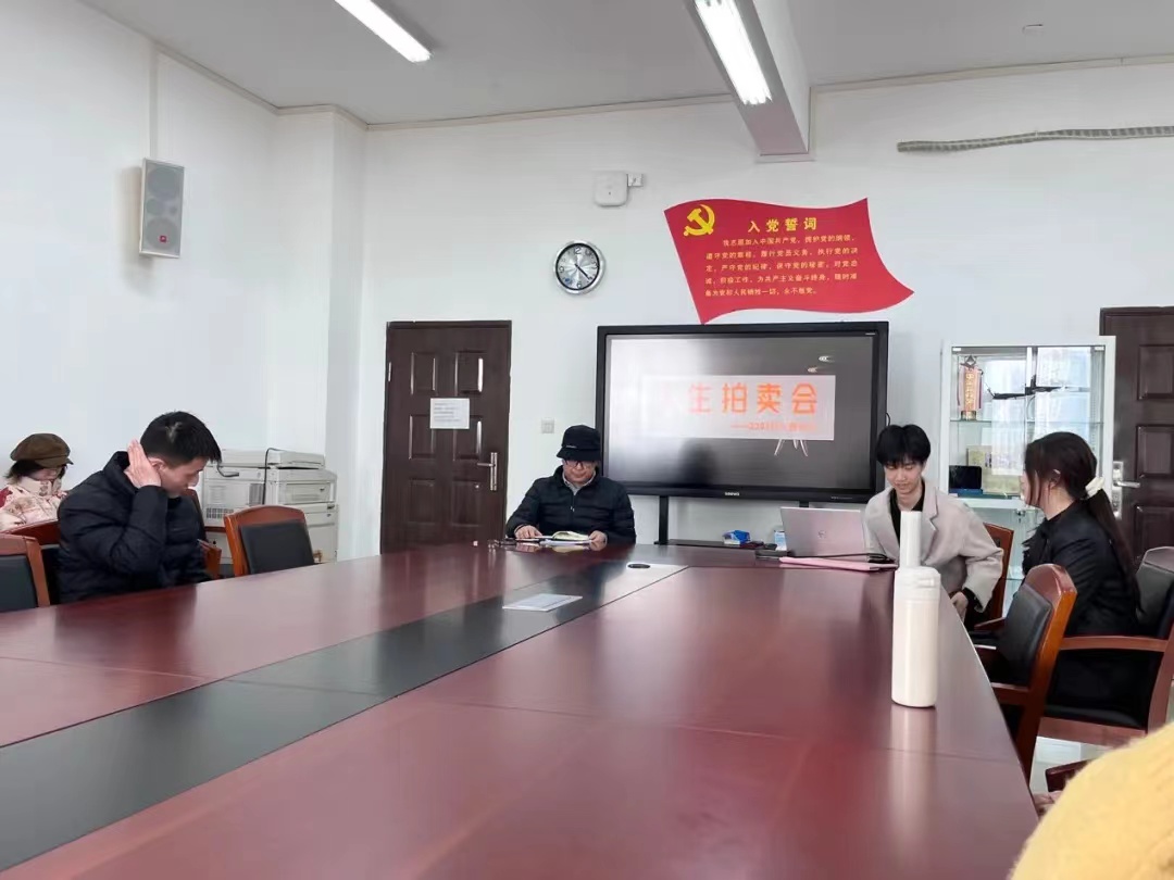 2201班开展了以“人生拍卖会”为主题的班会。在“人生拍卖会”中,有名望、智慧、爱情、快乐等多件拍品,每位同学均有100万的资金,可自由规划选择拍卖。在班长侯天向和王碧莹的主持下全班的同学完成了一场虚拟的“拍卖活动”。此外,班主任许永超还重点介绍了专业分流相关信息,解读了其他学校的课程和本校的人才培养方案。