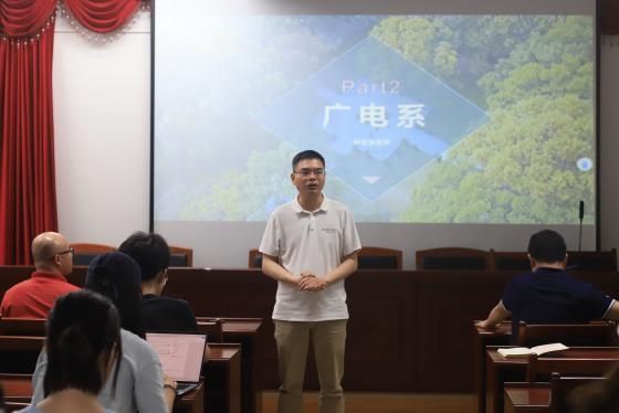 接着,广播电视学系主任林吉安老师上台分享。他提出了“大视听”的概念,并阐述了网络视听给广电专业带来的新机遇。林老师详细介绍了广电专业的呈现方式和课程特点,强调理论与实践相结合的重要性。他鼓励学生们要培养作为媒体人的综合素养,努力成为复合型的全能人才。林老师也建议大家根据自己的兴趣进行选择,找到真正适合自己的方向。