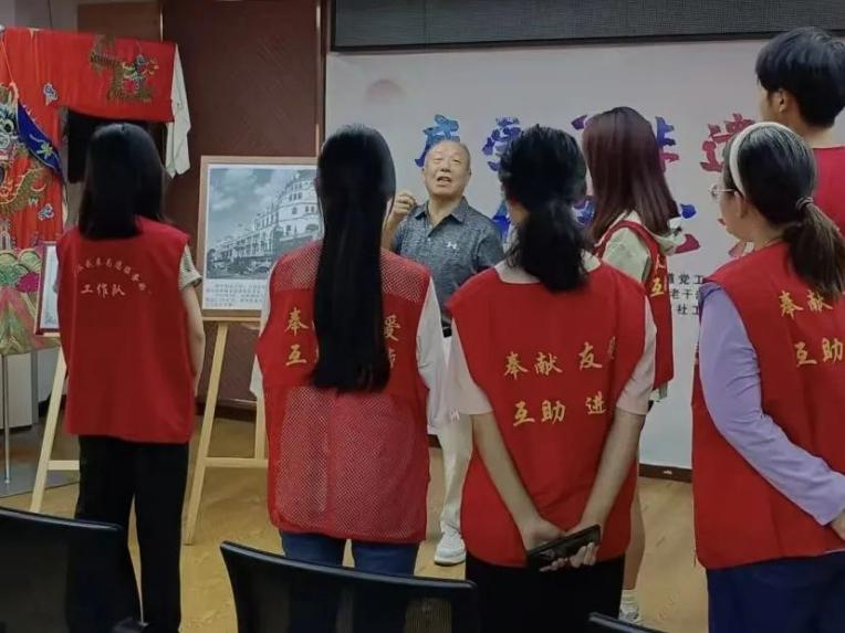 编织完粽子后,学生们跟随老年志愿者们的脚步,穿梭在狭窄而又充满故事的巷弄中。他们热情地向大家讲述着汉口的历史和文化,让我们仿佛穿越时空,回到了那个繁华的年代。大家走过一条条古老的街道,听着方新建爷爷讲述着关于打铜街的故事,感受着这座城市的历史沉淀。