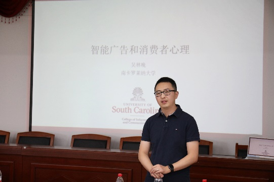 华新在线讯(通讯员 杨双双)6月7日,南卡罗莱纳大学信息与传播学院广告学系副教授、博士生导师,南卡莱罗纳大学信息与传播学院副院长吴林晚应邀在我院学术报告厅开展“智能广告和消费者心理”主题讲座。本次讲座由我院传播系系主任吴志远老师主持,陈欧阳、刘琼、辛静、张振宇等老师以及部分在校生参与此次讲座。