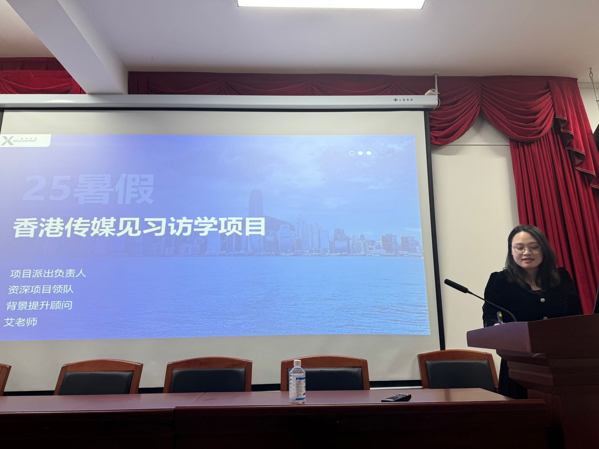 主讲人艾佳华老师从“港澳就业相关政策支持、港澳地区热门专业及研究生申请、港澳升学准备时间线、香港大学传媒见习体验项目介绍”四个方面,围绕学生赴香港求职、升学、就业的重点政策和准备工作、香港新传见习项目的重点内容和重要意义展开分享。