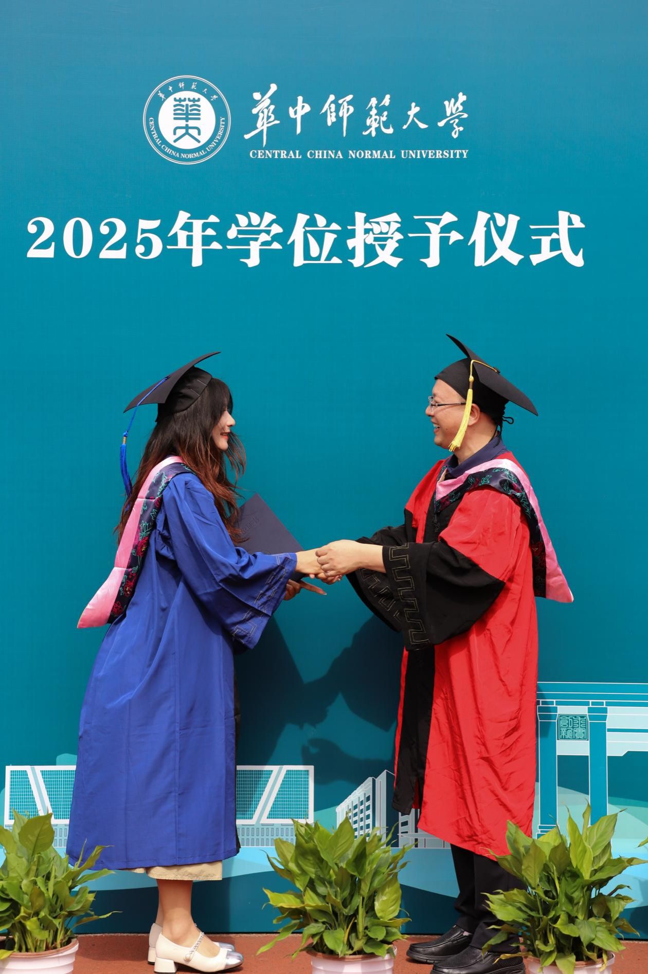 快门声中,毕业生们在学位台前留下珍贵的合影,笑容里既有收获的喜悦,也有离别的不舍。师生们纷纷在会场内外合影留念,定格青春最美好的瞬间,互道珍重与祝福。带着师长的嘱托、同窗的情谊和满载的知识行囊,华中师范大学新闻传播学院2025届毕业生将从桂子山扬帆起航,奔赴五湖四海,踏上新的征程。