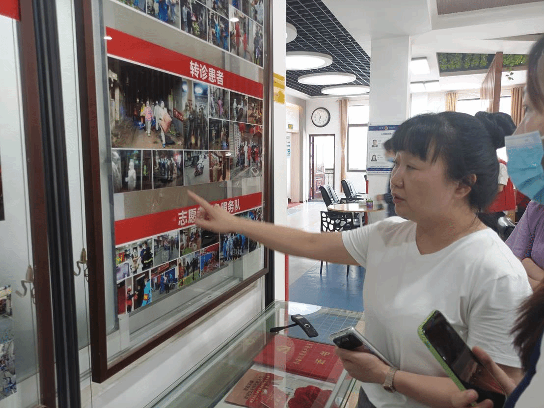(倪娟书记向我们介绍“防疫文化墙”)