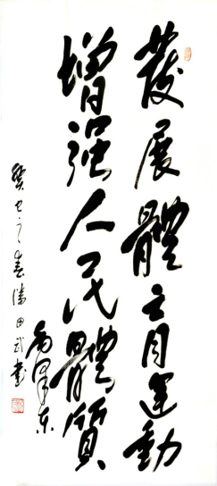毛泽东题词:“发展体育运动,增强人民体质。”