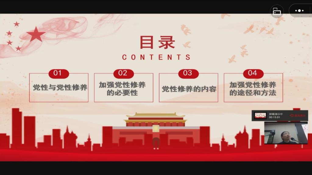 经济与工商管理学院的正处职组织员闫丽莉以“党性修养”开启本次培训的第一堂课。并从党性与党性修养、加强党性修养的必要性、党性修养的内容、加强党性修养的途径和方法四个方面展开培训。闫丽莉在开课之初用周瑜和司马懿的例子引入了关于修养的话题,在重点和复杂的地方进行问题设置和案例讲解,帮助同学进行理解。