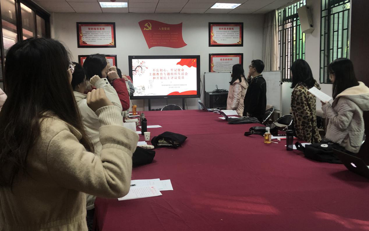 (通讯员 毛紫薇)12月12日中午,“不忘初心、牢记使命”主题教育专题组织生活会和党员民主评议会在学院会议室召开。2019级新闻与传播研究生党支部全体成员、学院分党委委员兼辅导员李鸿老师参与本次会议。
