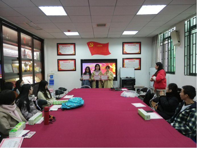 本次颁奖典礼由学生党务中心承办,参与者为“十一书”诵读比赛的获奖者,学生党务中心成员和李鸿老师。本次颁奖典礼由分党委委员李鸿老师主持。