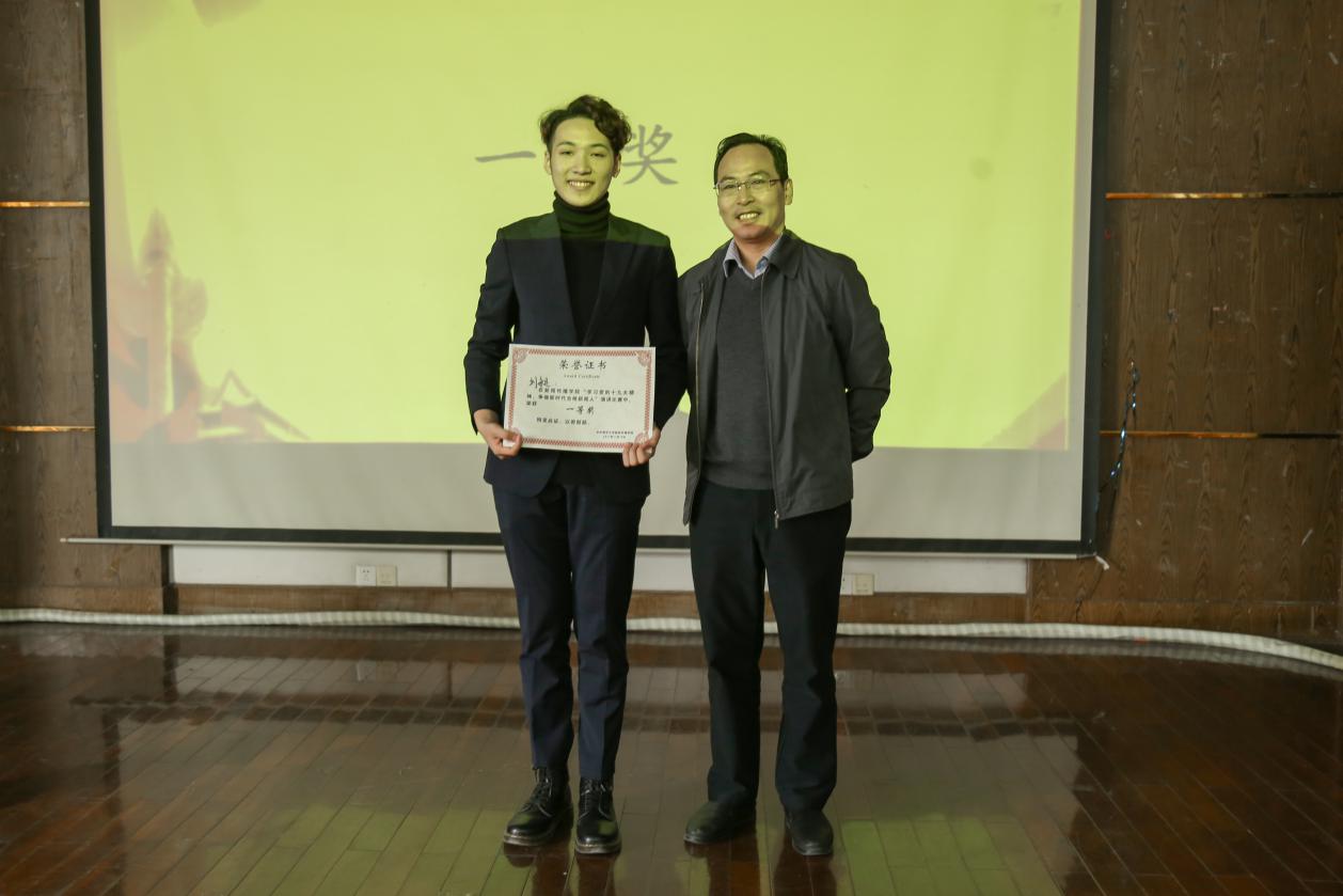 刘昶获得一等奖,华中师范大学校党委组织部副部长连海江为其颁奖。