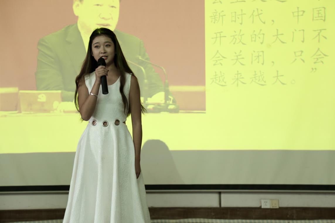 主持人宣布演讲比赛开始,并介绍到场嘉宾。
