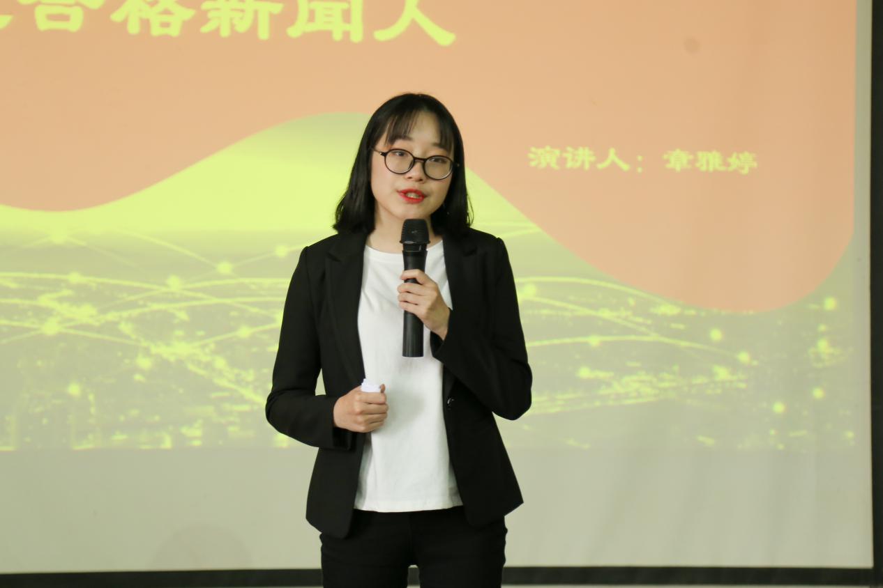 前五位选手演讲完毕,新闻传播学院刘琼老师对其进行一一点评。