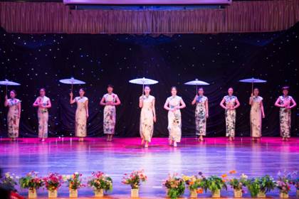 我院的表演被安排在节目单上第二位,组成我院表演队的是十名女性教职工:韩君华、陈晋、陈俊峰、胡瑛、称欧阳、段然、王娴卉、骆莎、李鸿、沈思。队伍由工会女工委员汪芸领队。据了解,我院表演节目“江南水乡,烟雨濛濛”为呼应活动“民族风”的号召,表演服装以旗袍为主题,伴奏旋律则选择了无唱词版《江南》。灵感来源于江南水乡。“因为我们的老师都很年轻,设计要更能凸显队伍柔美婉约的青年风采。”汪芸接受采访时笑道,“老师们都是用自己的休息时间参加排练,练习期间很辛苦,但是为了学院的荣誉,为了女工工作,大家都很给予支持,我很感谢她们。”