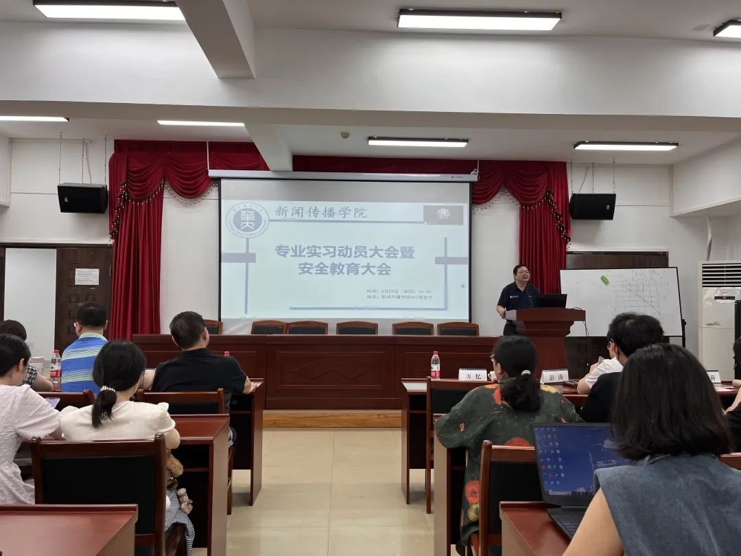 华新在线讯(通讯员 吴亦晗)为促进我院专业实习的顺利开展,强化实习管理,明确实习内容,确保实习质量,6月29日下午,新闻传播学院在学术报告厅召开2020级专业实习动员大会暨安全教育大会。出席本次大会的有我院党委书记夏守信,副院长彭涛,党委副书记程秀莉,张德华老师,周莉老师,黄月琴老师,陈科老师,辅导员杜雨薇老师,教学秘书吴迪老师与2020级全体学生。本次会议由彭涛副院长主持。
