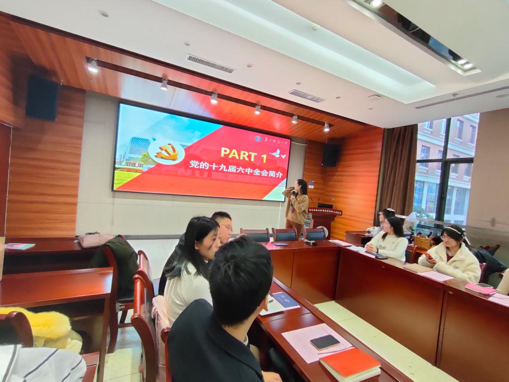 会上,华中师范大学新闻传播学院党务干事李鸿老师领学十九届六中全会通过的《中共中央关于党的百年奋斗重大成就和历史经验的决议》,李鸿老师对本次会议精神进行了深入浅出的解读,并强调全体师生要坚定理想信念,无论何时何地都要勿忘苦难辉煌、无愧使命担当、不负伟大梦想。