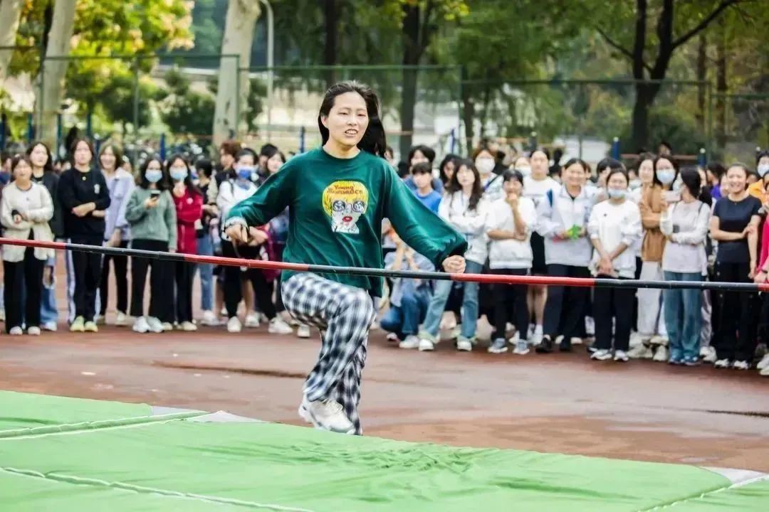 比赛过半,汪丹蕾同学上场。第一次起跳前,她不断调整起跑位置,找到最优路线,但在第一跳时不慎碰落横杆。在接下来的两跳中,汪丹蕾的动作明显更加自如。然而由于缺乏经验,起跳时还是不慎碰到横杆。比赛结束后她谈到,虽然这次比赛结果没有达到她自己的预期,但还是觉得有新的收获:相比许多选手跑到横杆前却不敢起跳,自己当时只想着一直向前跑,必须跳,这便已然战胜了自我。在走回大本营的路上她还表示:“我很感谢咱们学院志愿者的全程陪同,以及摄影和呐喊助威的同学,正是有了他们,我才敢突破自我,勇敢起跳。”